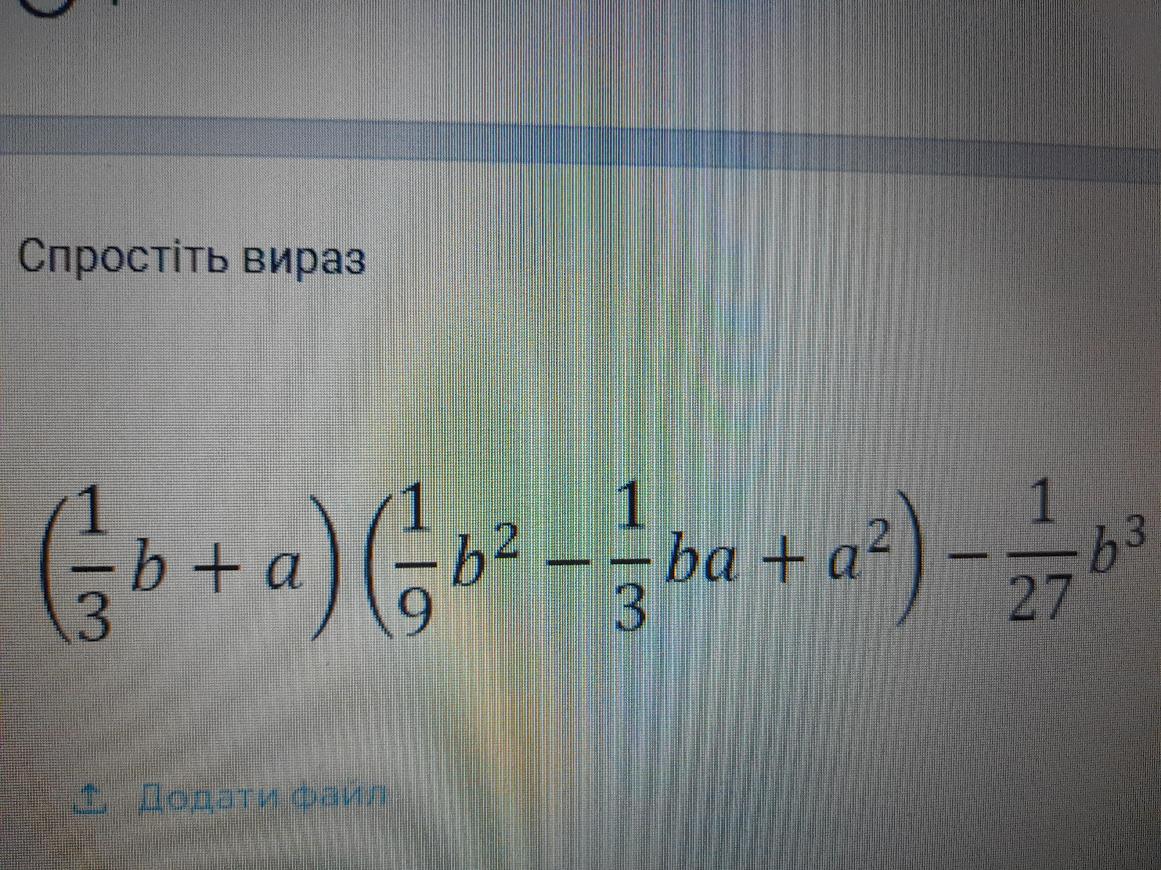 (1/3*b+a)(1/9*b²-1/3*ba+a²)-1/27*b³=(1/27*b³+a³)-1/27*b³=a³
