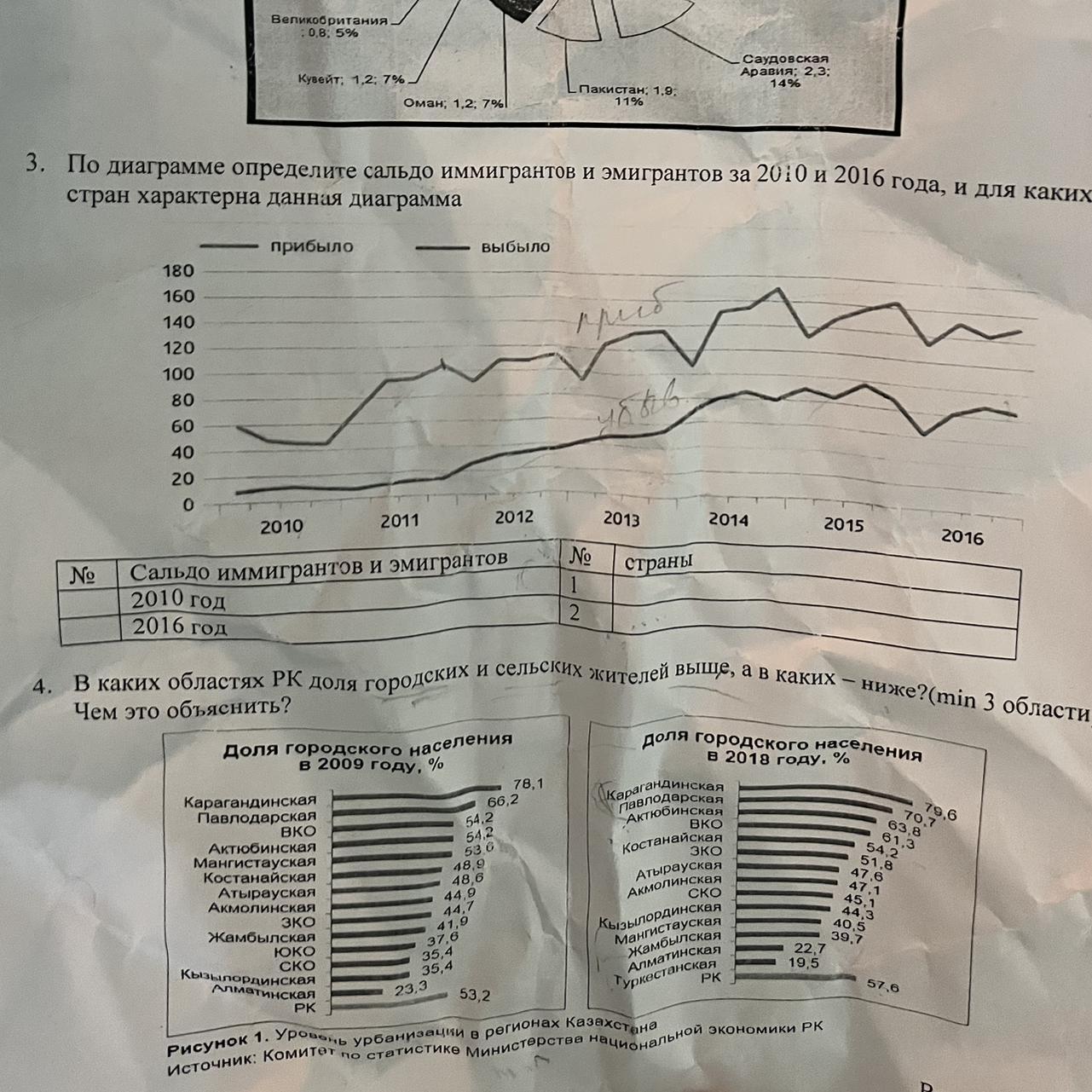 По диаграмме определите сальдо иммигрантов и эмигрантов за 2010 и 2016 года, и для каких стран характерна данная диаграмма