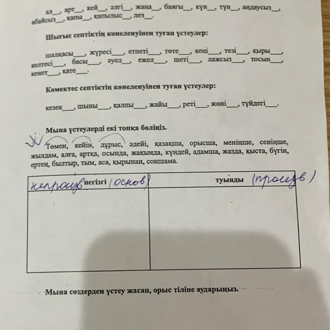 жыдам, алга, артка, осында, жакында, кундей, адамша, жазда, кыста, бугін,