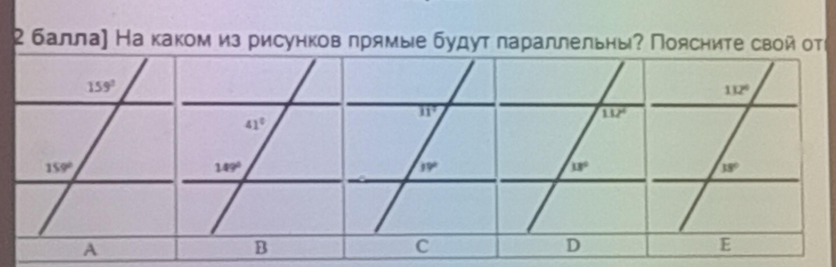 1 вариант 1. [2 балла] На каком из рисунков прямые будут параллельны? Поясните сво Z 2 B 112