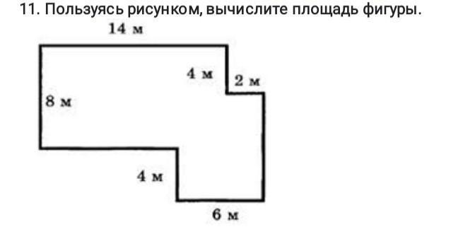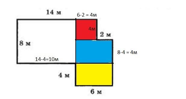 - для белого прямоугольника ширина = 8м, длинна = 14м-сторона квадрата = 14 - 4 = 10м; площадь S = 10*8 = 80м²