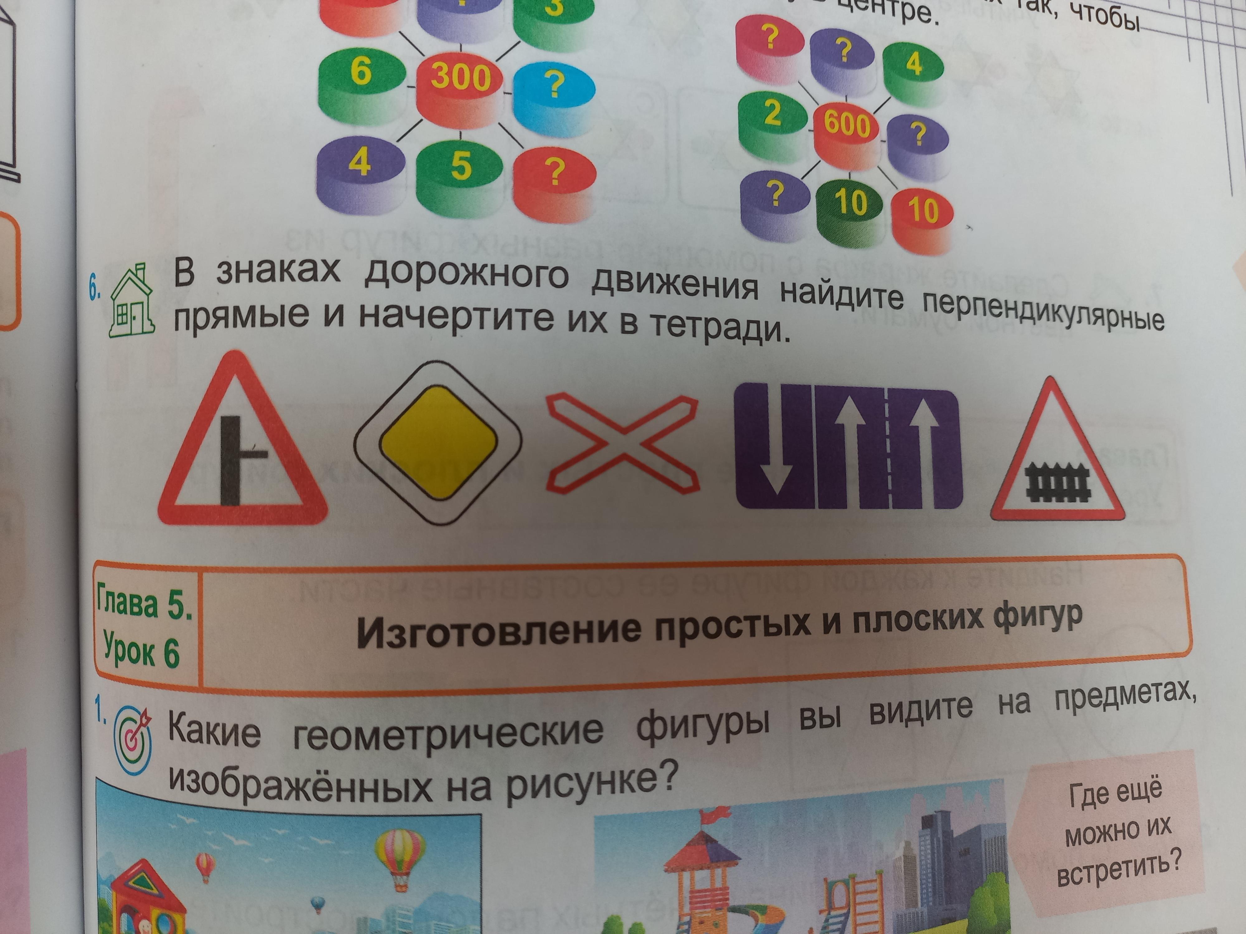 В знаках дорожного движения найдите перпендикулярные прямые и начертите их в тетради?
