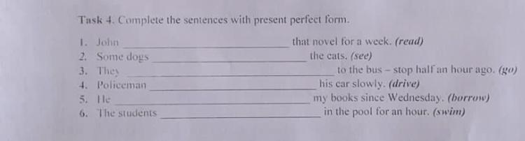 Ответ:1 has read 2 have seen 3 have gone 4 has drived 5 has borrowed 6 have swum