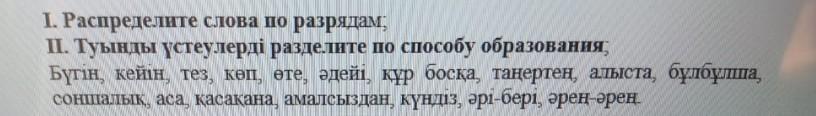 - Наречия времени: бүгін, кейін, тез, аса, күндіз