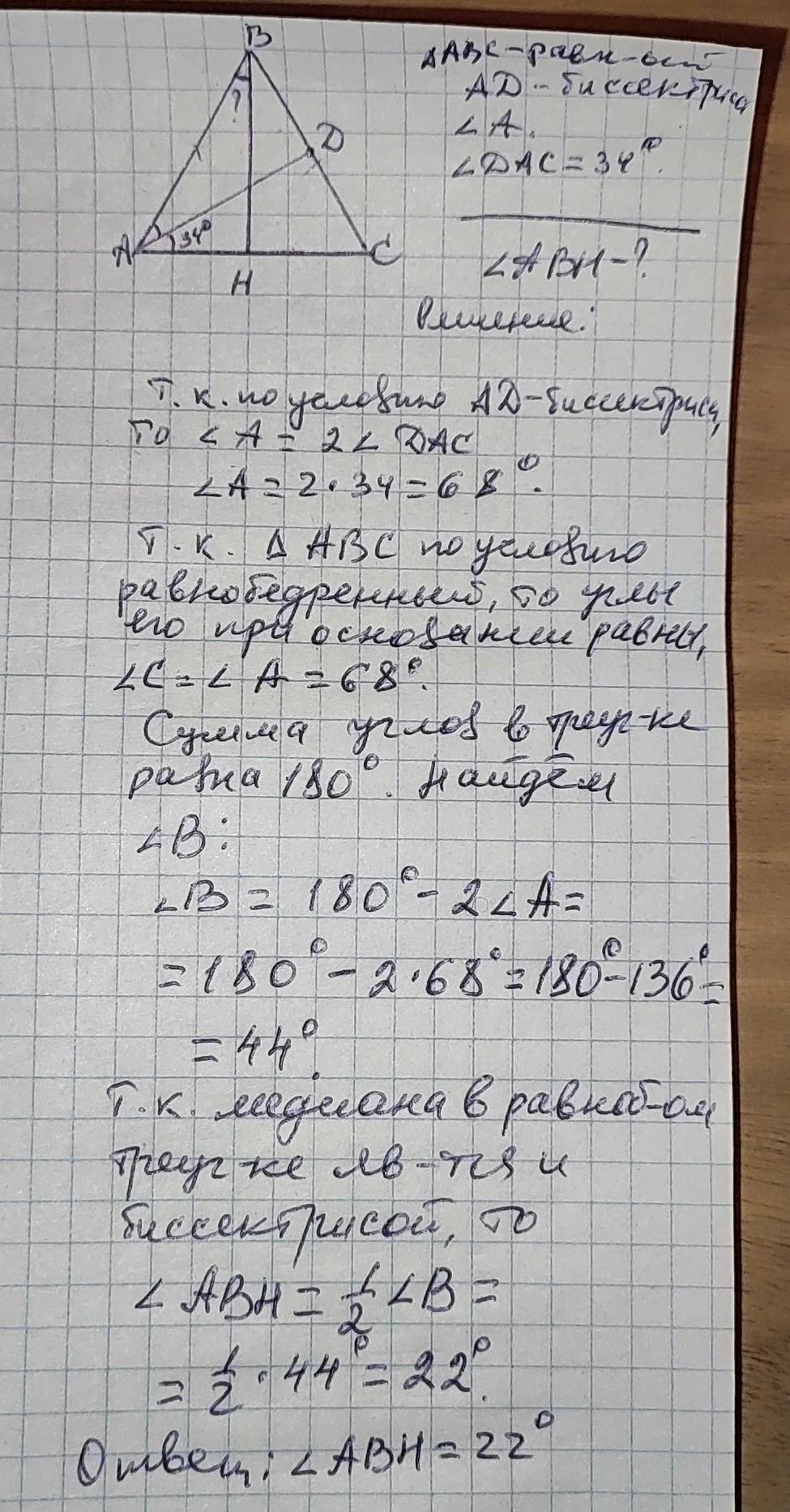 ...составляет с основою угол 34° или с боковой стороной?Проверьте,у вас ошибка.
