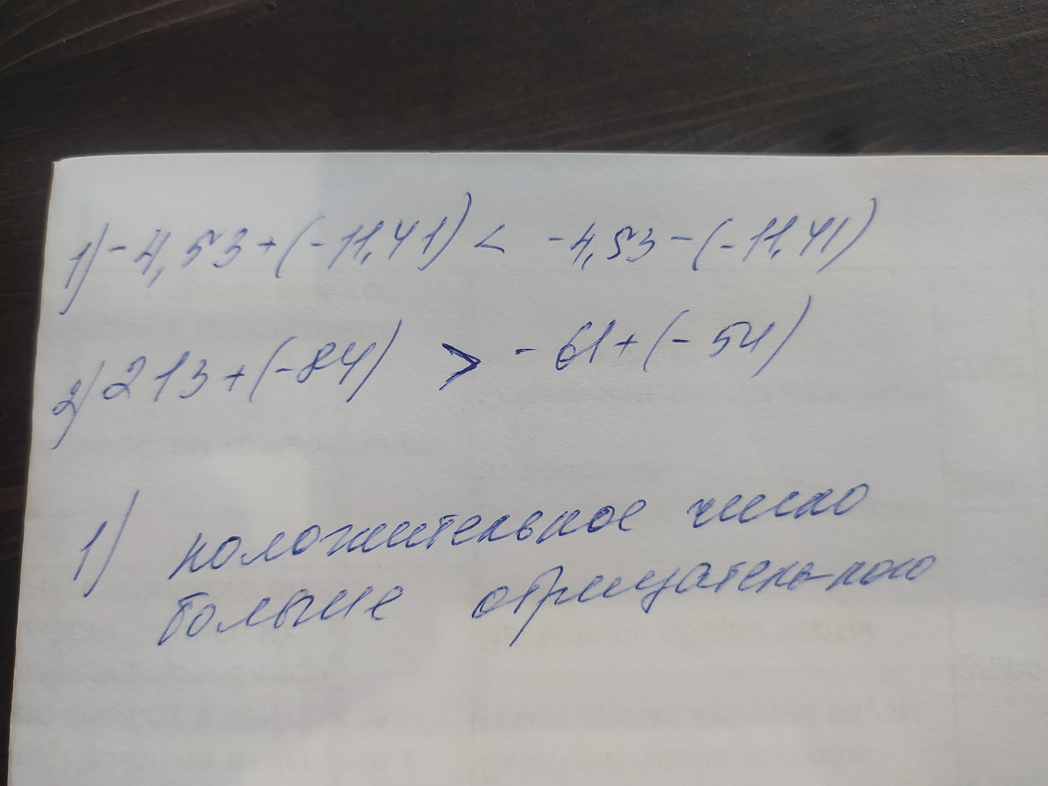 6. Не виконуючи обчислень, порівняйте: 1) різницю чисел 4,53 і 11,41 та їхню суму 2) суму чисел 213 i - 84 та суму чисел -61 i-54. Відповідь обгрунтуйте.