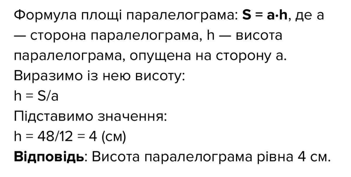 вот ответ ) высота = 4 см. решение ниже, с объяснением