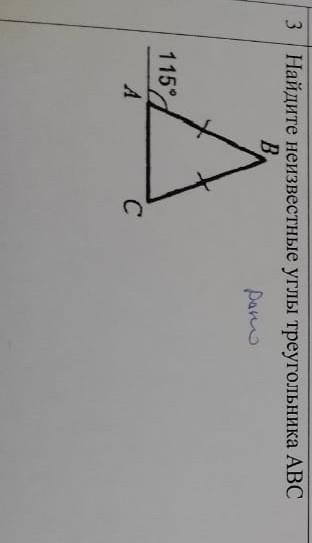 Дано: равнобедренный треугольник, угол А= угол С ,внешний угол равен 115 градусов