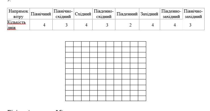 Використовуючи дані, побудуйте розу вітрів за місяць Напрямок вітру Північний 4 Північно-східний 3 Східний 4 Південно-східний 3 Південний 2 Західний 4 Південно-західний 4 Північно-західний Кількість 3днів 4 3 4 3 2 4 4 3 9. Помогите пж