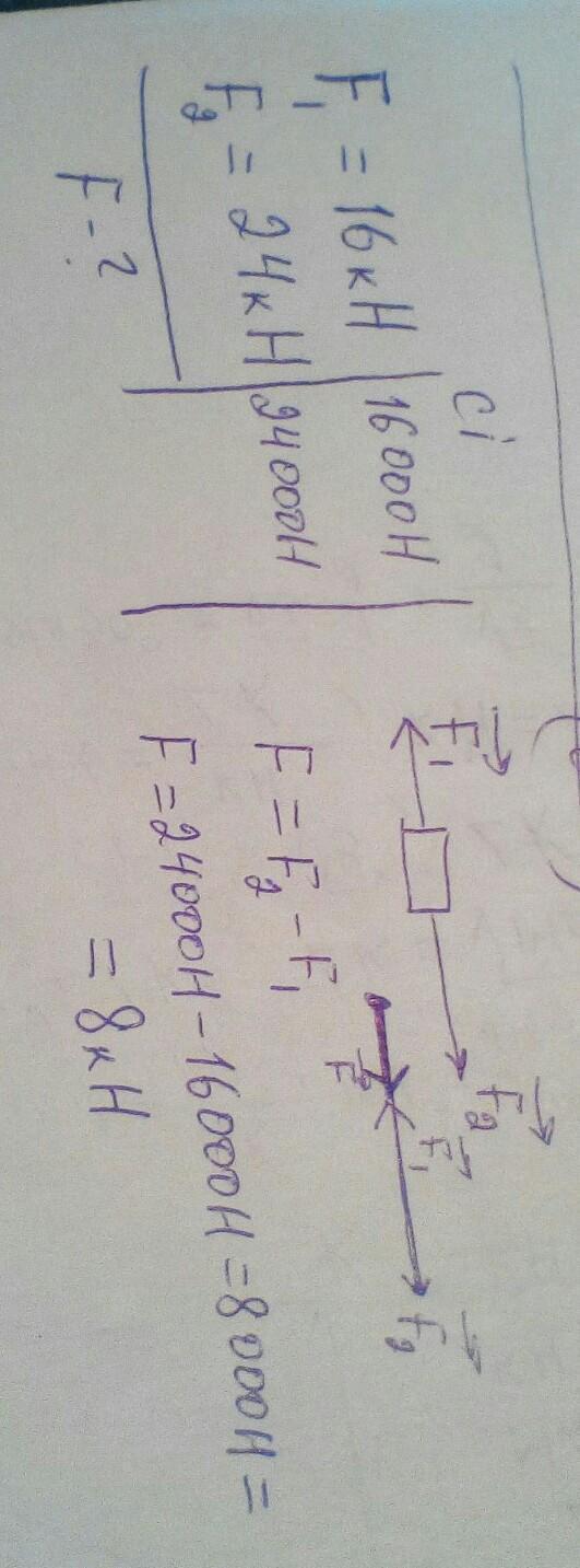 На тіло в протилежних напрямках діють на дві сили модуль яких відповідно дорівнюють 16кН і 24 кН.
