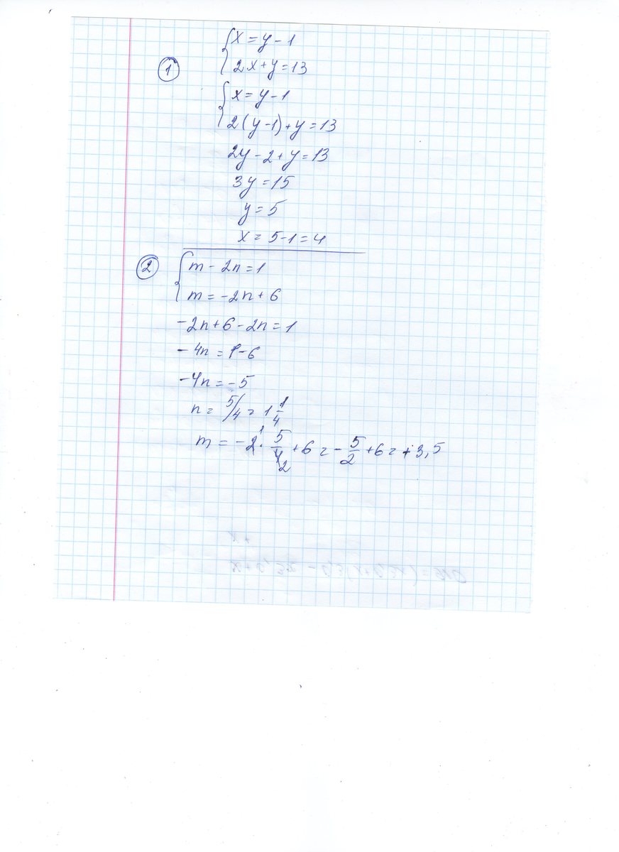 1) х=у-1, значит 2у-2+у=13