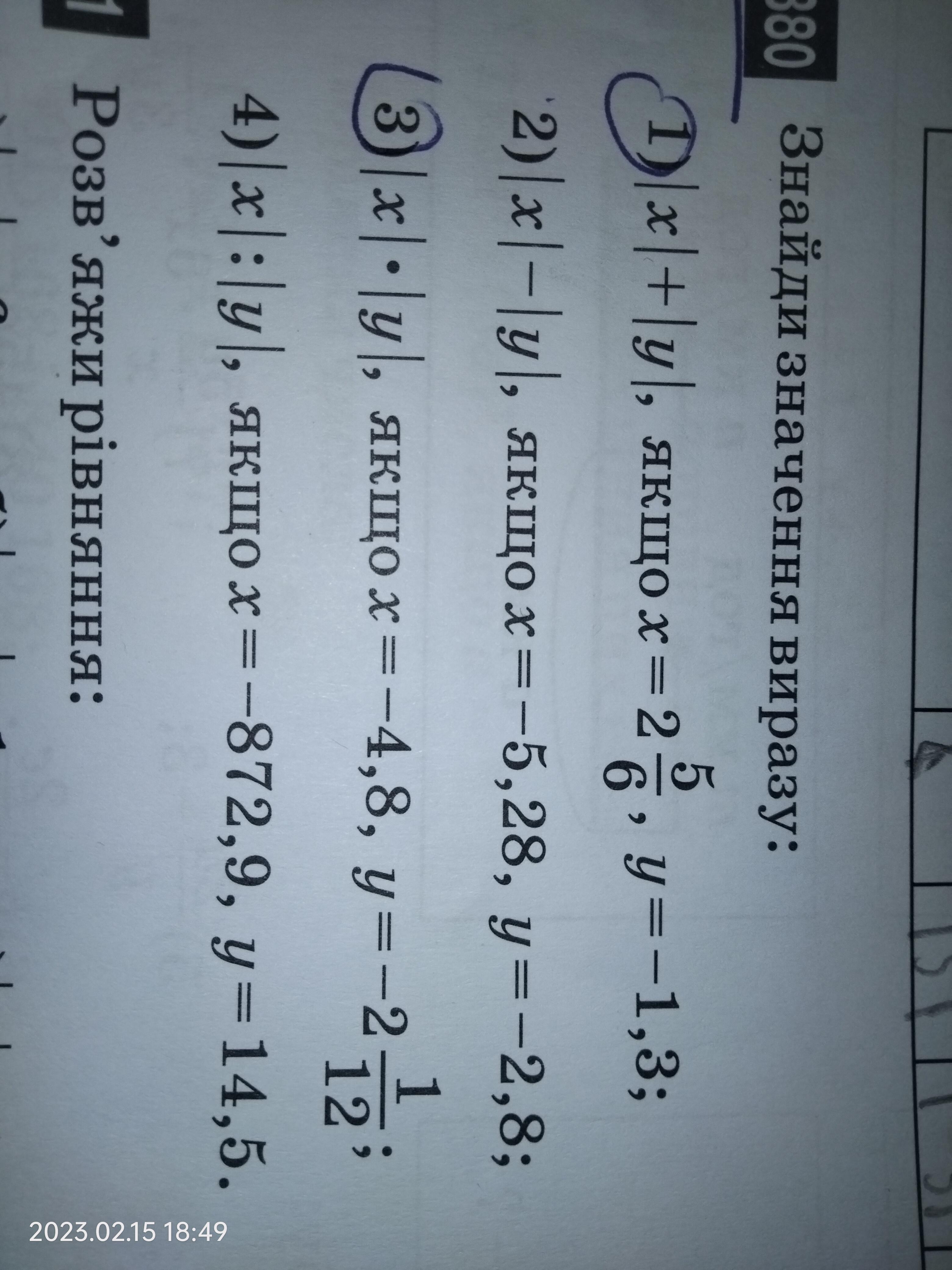 х = 2 5/6; у = -1,4