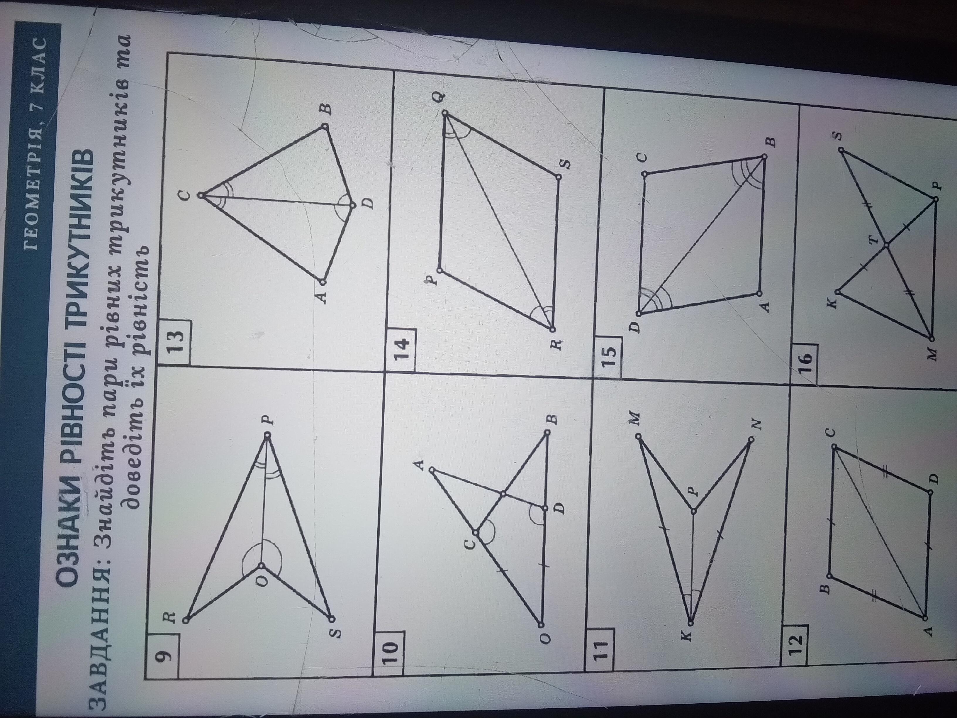 Знайдіть пари рівних трикутників та доведіть їх рівність.ДОПОМОЖІТЬ БЛАГАЮ!