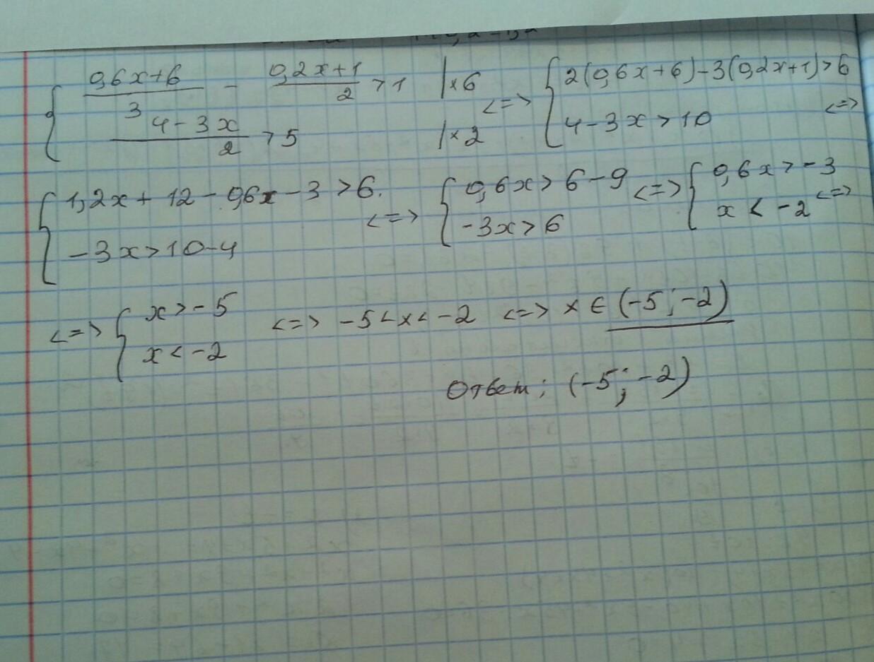 1) (0, 6x + 6)/3 - (0, 2x + 1)/2 > 1
