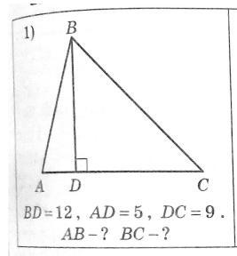 BC^2 = 12^2 + 9^2 = 144 + 81 = 225