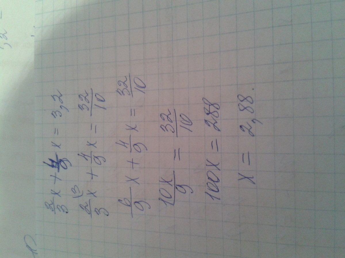 Или (2/3)*х+(4/9)*х = 3,2? Тогда еще проще