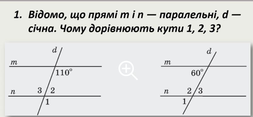 Помогите пожалуйста с Геометрией Мне оочень нужно обьяснение! Типо такого ( оскільки кут 1 і 2 такие-то, то за такой-то теоремою він = куту 3)