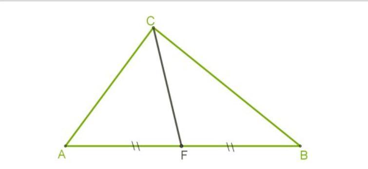 З'ясуй периметр трикутника ACB, якщо CF - медіана, і відомо що BC=60 мм FA=50 мм, AC=80 мм.