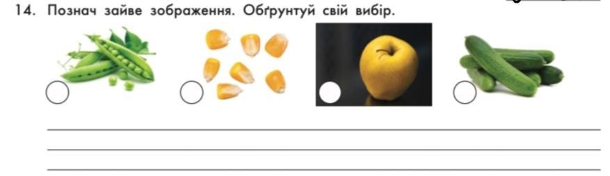 Тому що, на інших картинках зображені овочі , а яблуко це фрукт