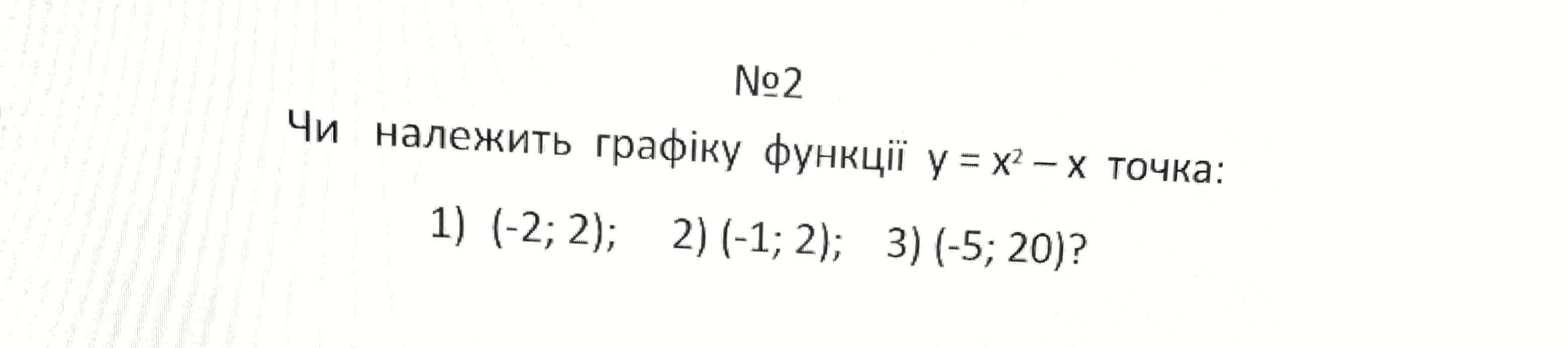 1. Для точки (-2; 2) ми маємо y = (-2)² - (-2) = 6. Отже, ця точка не належить графіку функції.