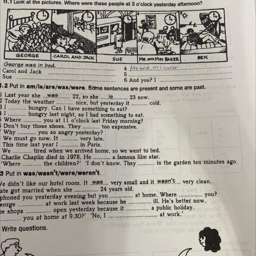 11.1 Look at the pictures. Where were these people at 3 o'clock yesterday afternoon?