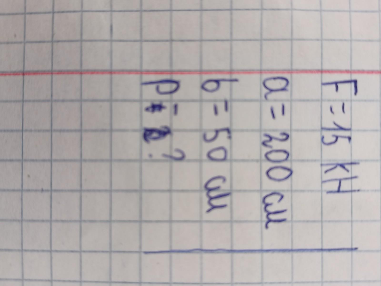 p=F/S=F/(a*b)=15*10³/(2*0.5)=15*10³ Па