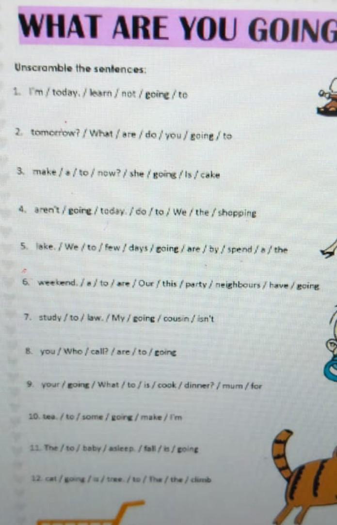 Ответ:1 I'm not going to learn today. 2 What are you going to do tomorrow? 3 Is she going to make a cake now? 4 We aren't going to do the shopping today. 5 We are going to spend a few days