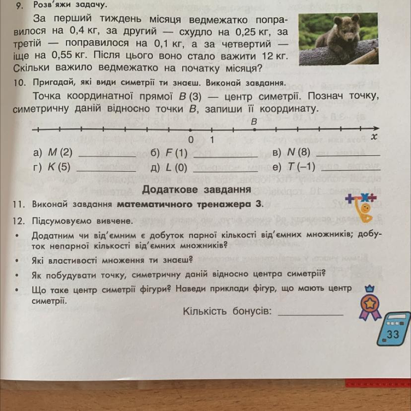 Точка координатної прямої В (3) центр симетрії. Познач точку,