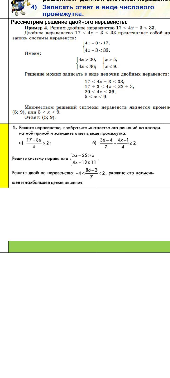 1. Решите неравенство, изобразите множество его решений на коорди- натной прямой и запишите ответ в виде промежутка
