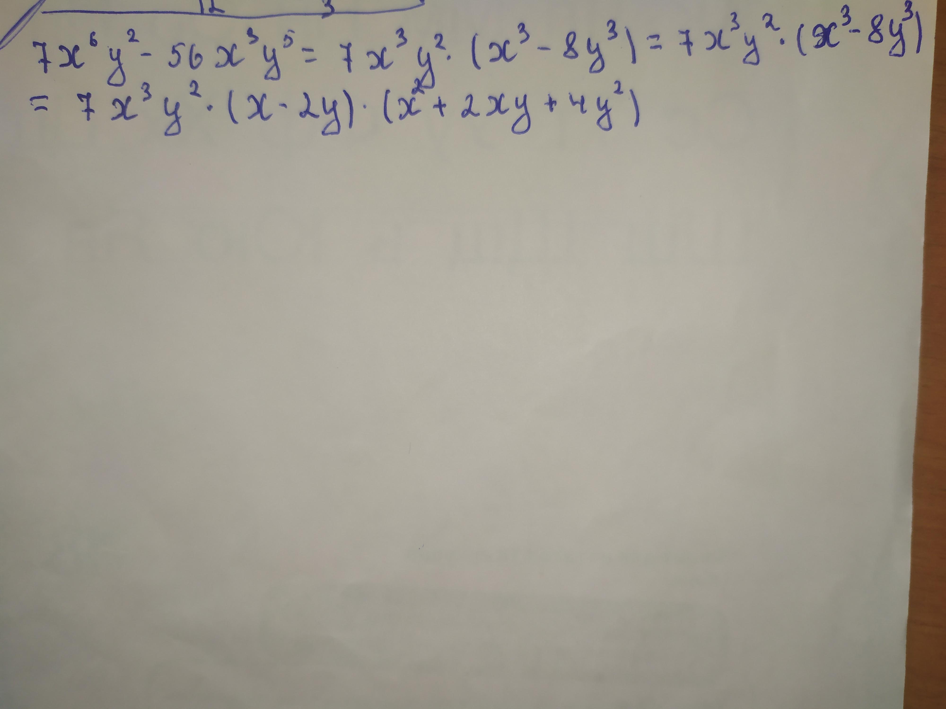 7x⁶y²-56x³y⁵ = 7х³ у² • (х³ - 8у³) = 7х³ у² • (х-2у)(х²+2ху+4у²)