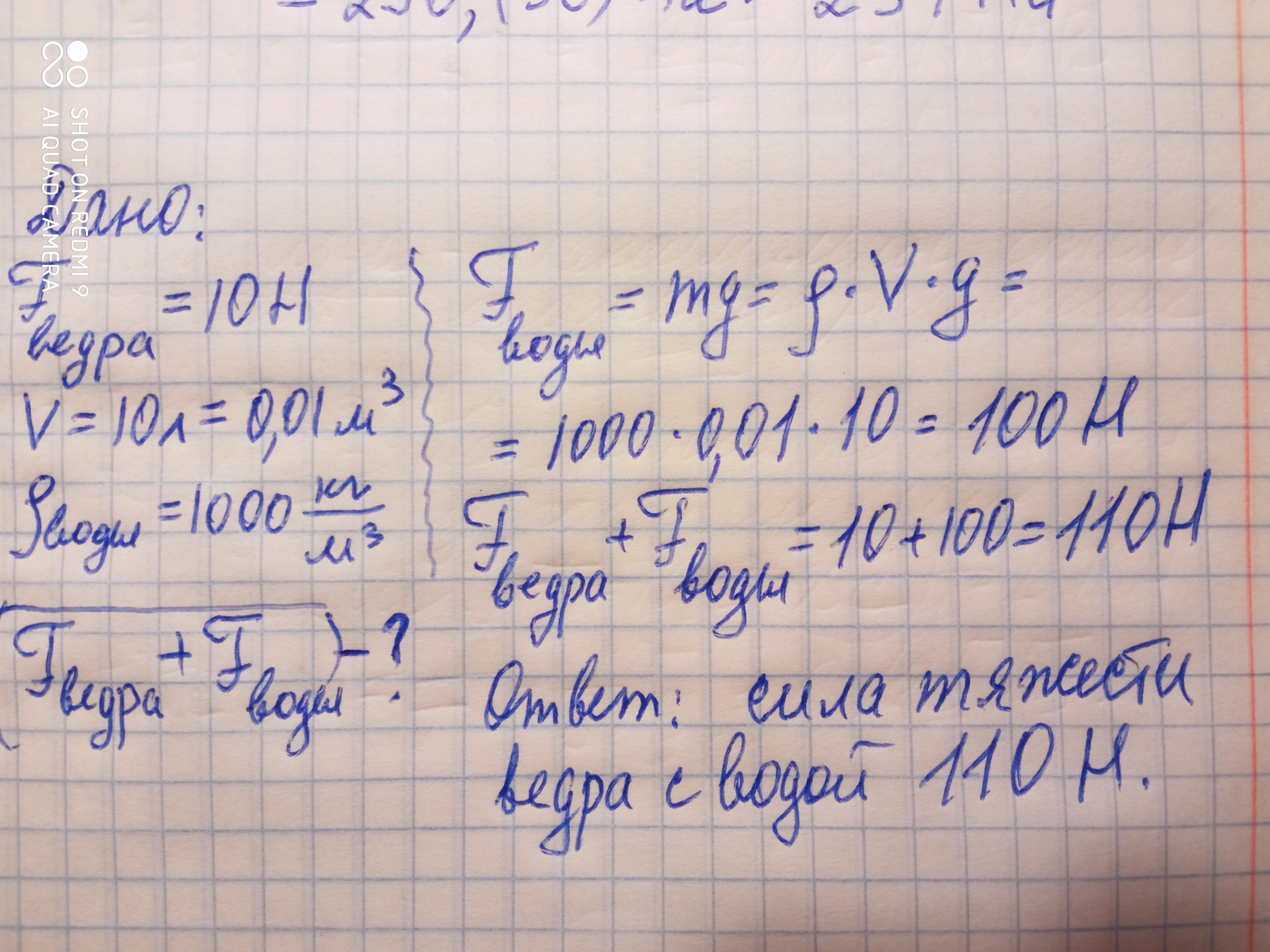6. (2,5 б) На порожнє відро діє сила тяжіння 10Н. Яка сила тяжіння діє на це відро, якщо у нього налити 10 л води ?