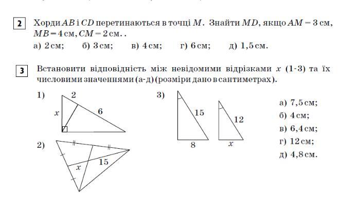 3. 1) Довжина катета дорівнює середній геометричній гіпотенузі та проекції цього катета на гіпотенузу.