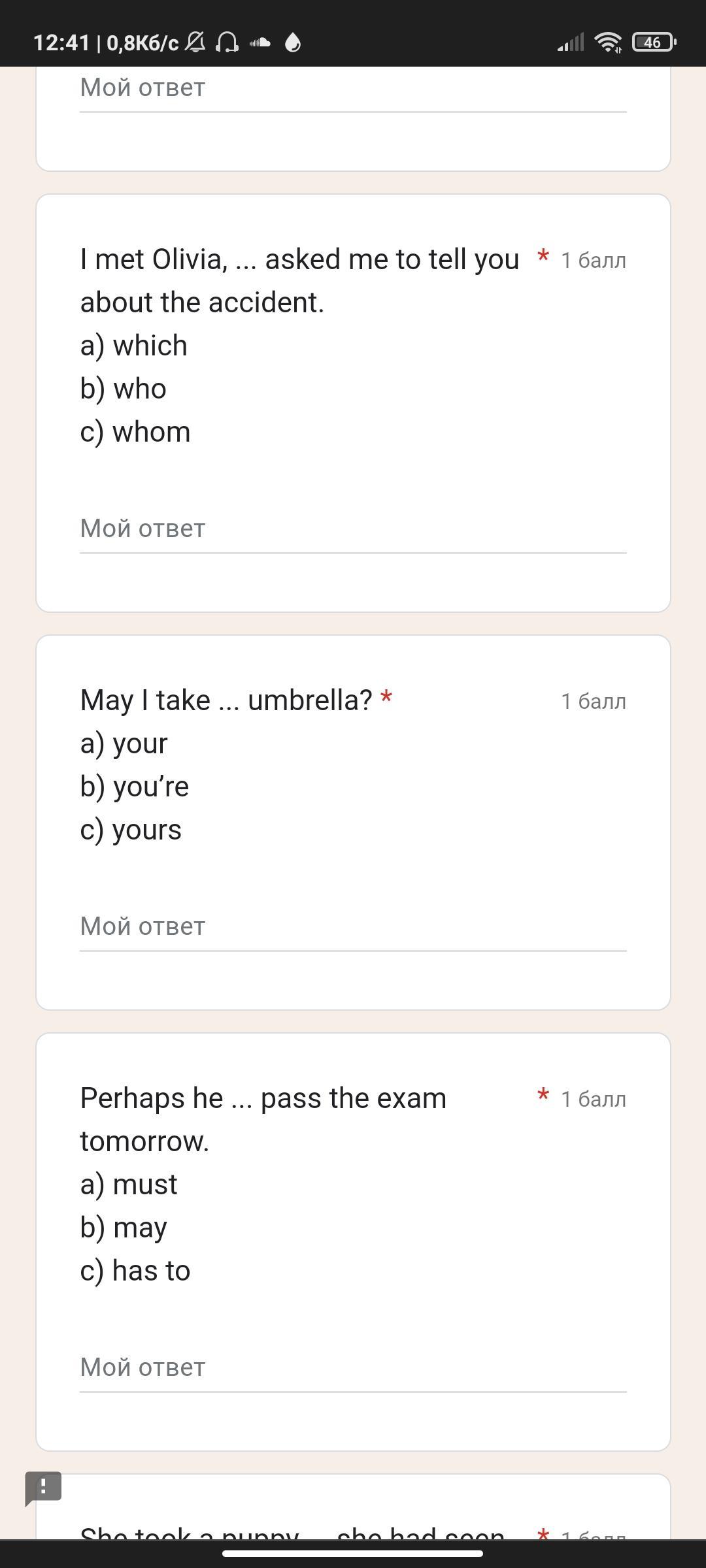 1 who 2 your 3 may 4 she didn't like onion 5 which 6 she was playing the piano then 7 study/will pass 8 she was driving to work then 9 hers 10 who 11 which 12 see/will give