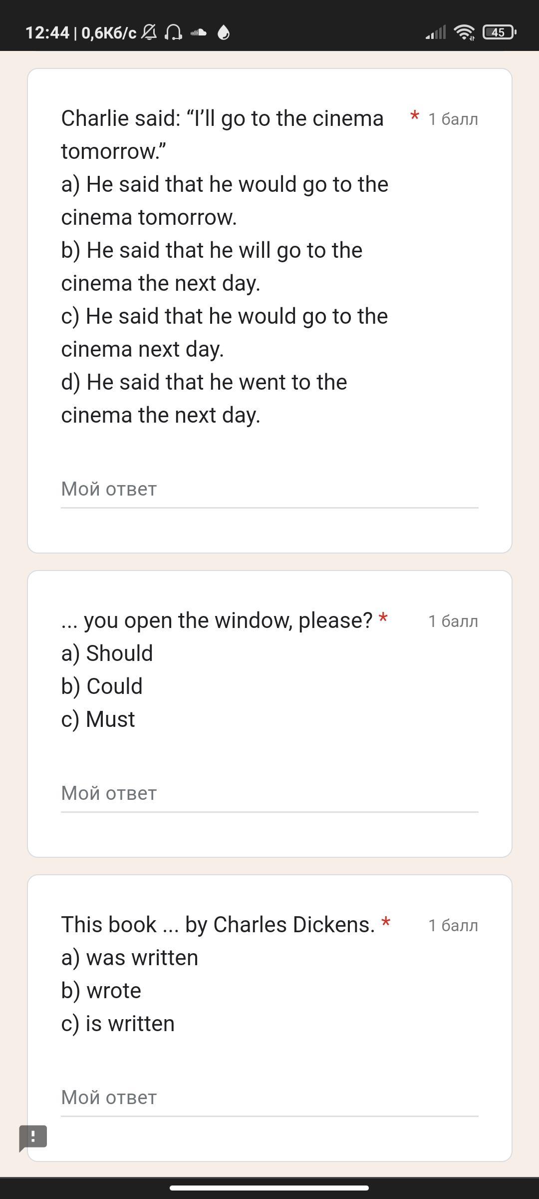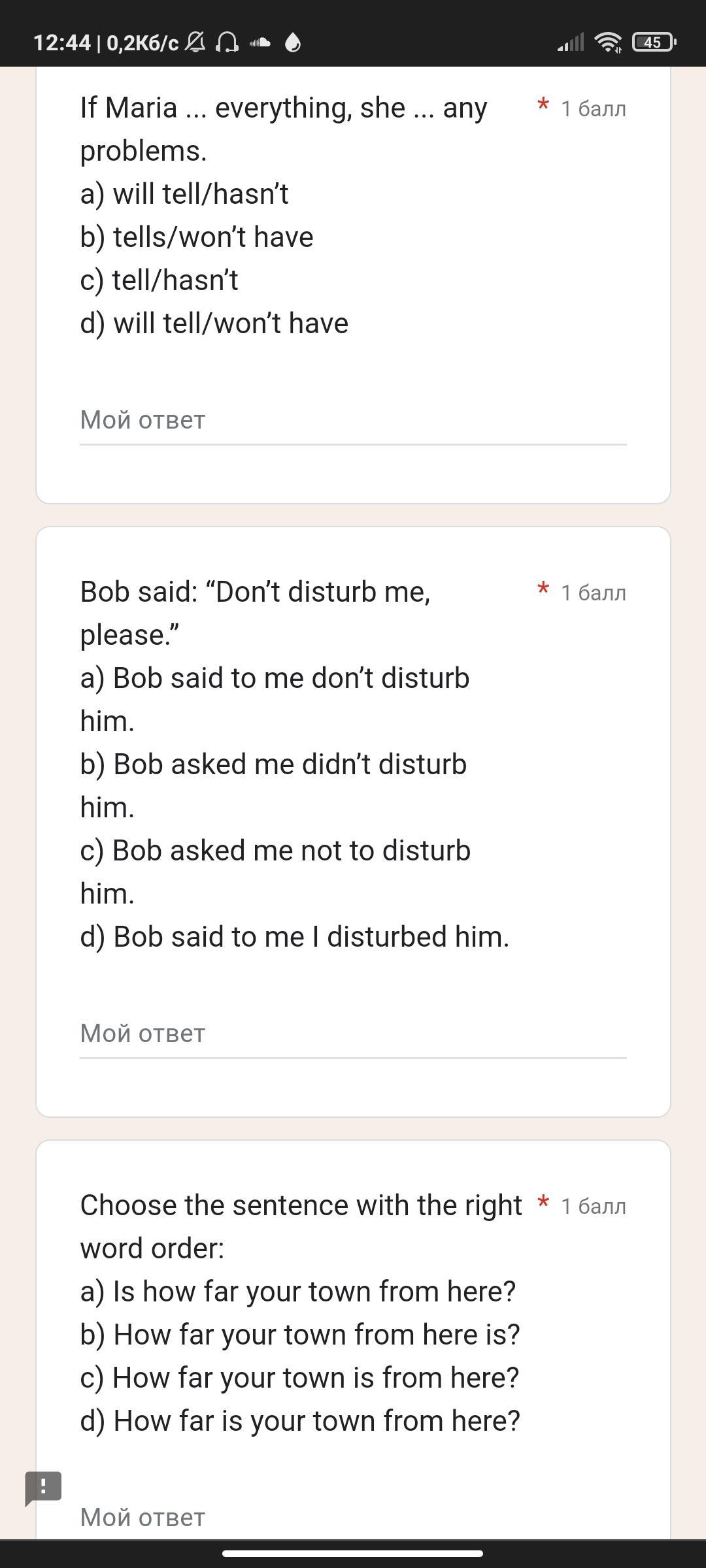 1 tells/she won't have 2 not to disturb 3 how far is your town from here 4 them 5 can 6 would you like some coffee? 7 that 8 a 9 better 10 Tom invited a lot of people 11 out 12 the 13 he would go to the cinema next day 14 could 15 was written