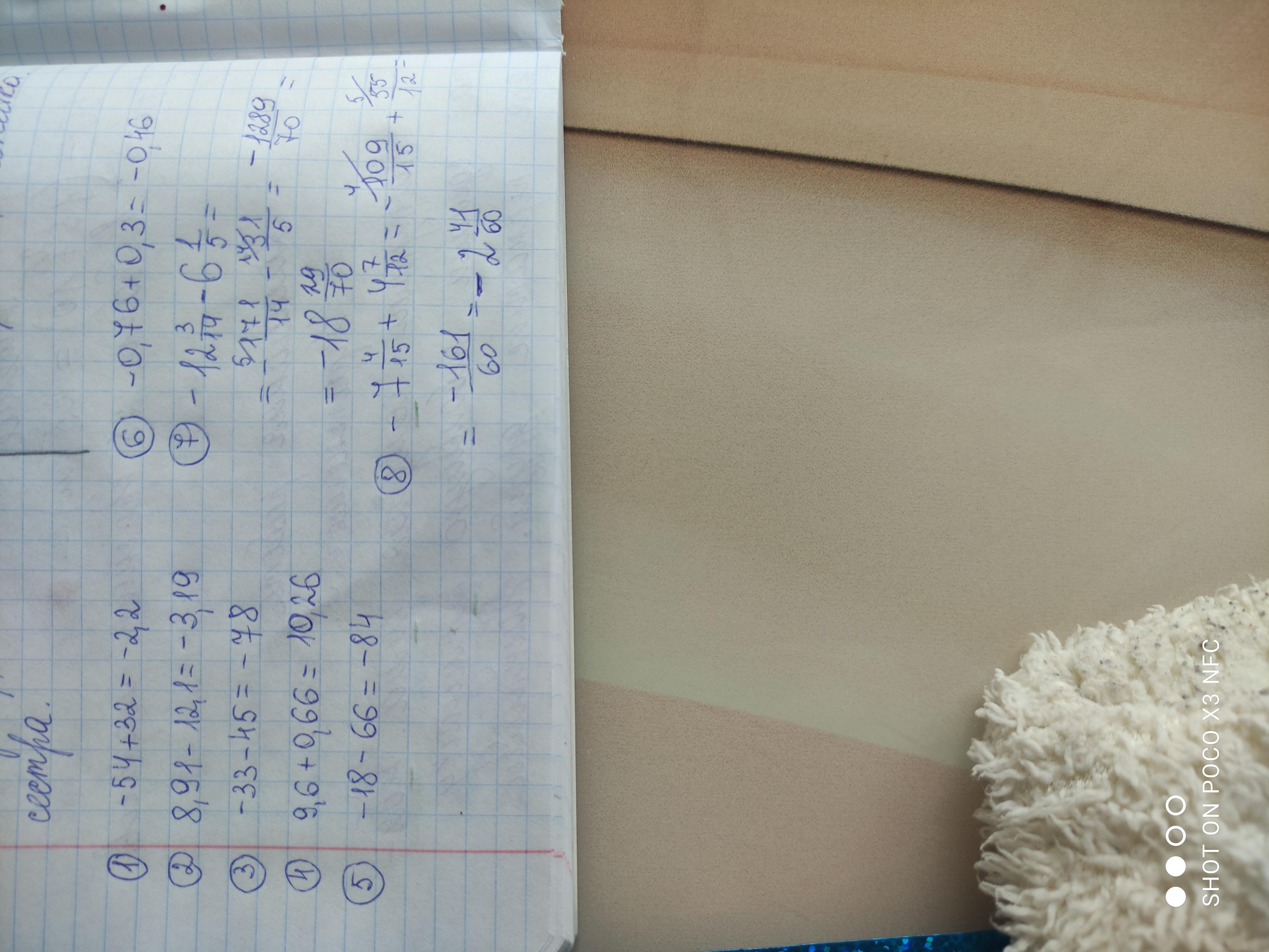 7) -12 3/14 -6 1/5 = -12 15/70 -6 14/70 = -18 29/70.