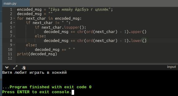 Код расшифровывающий закодированную строку, написан на Python.