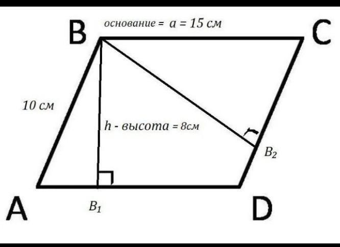 сторони паралелограма дорівнюють 15 см і 10 см, а висота проведена до меншої сторони-10 см. знайдіть висоту проведену до більшої