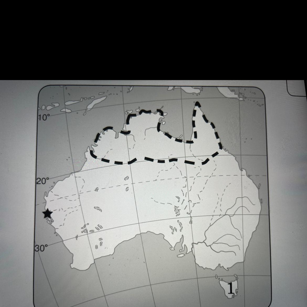 1 Укажіть назву об'єкта Австралії, позначеного на картосхемі зіроч-