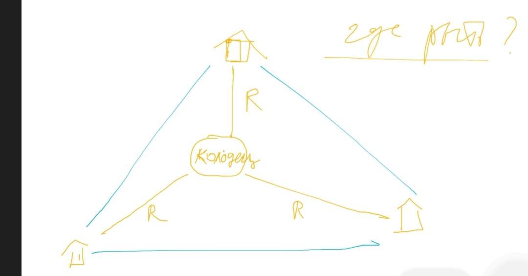 3 соседа решили выкопать колодец чтобы для всех было равное расстояние до колодца. Где нужно построить колодец?