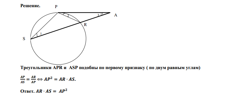 точка А находиться вне некоторой окружности. Из точки А к окружности проведена касательная АР,где Р- точка касания. через точку А проведена еще одна прямая,пересекающая окружность в точках R и S. Доказать что AR*AS=AR/2