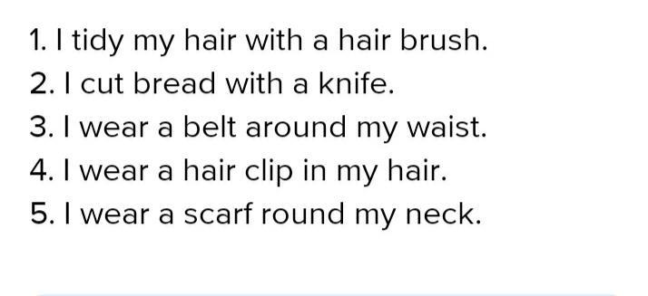 1.brush 2. knife 3.corset 4.barrette 5.necklace/necklace