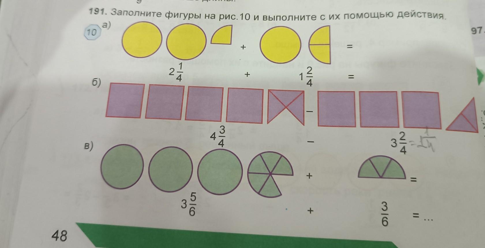 191. Заполните фигуры на рис. 10 и выполните с их помощью действия