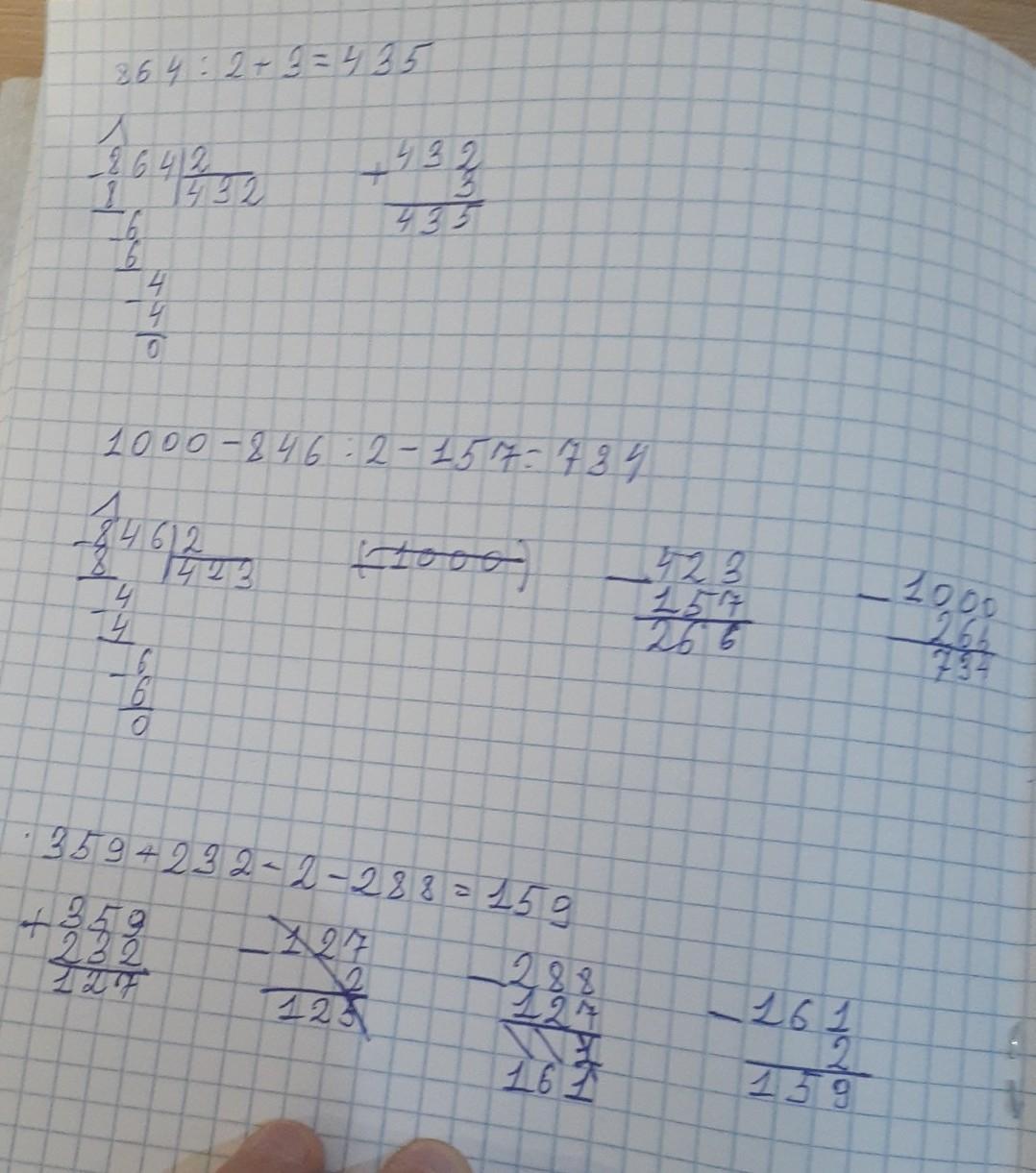Определи порядок действий. Вычисли, записывая действия столбиком. 864:2+121-3 1000-846: 2-157 359 +232-2-288