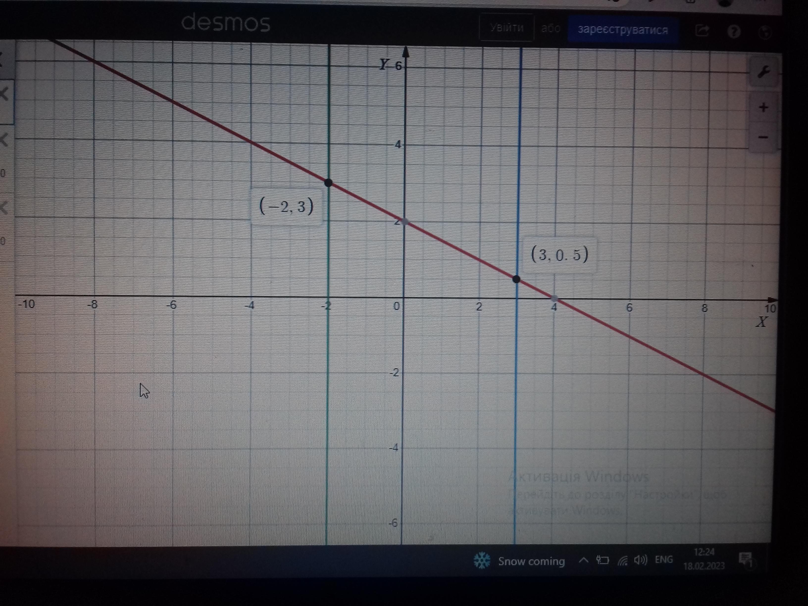 Для графічного вирішення цієї задачі потрібно провести пряму, що є паралельною вісі ОУ, та проходить крізь точку з відповідною координатою а) Х = -2, та б) Х = 3. Далі на перетині графіка функції У = -0,5Х + 2 та проведених прямих знаходимо координати точок а) ( -2, 3 ), та б) ( 3, 0,5 ). Дивись малюнок 2.