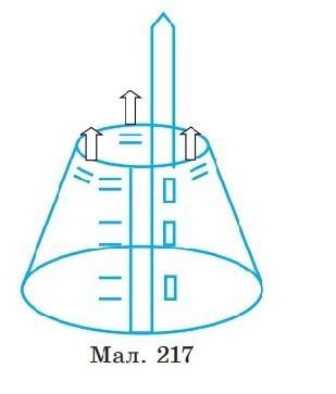 У ветеринарних аптеках продають готові захисні комірці для собак і кішок (мал. 217). Щоб зекономити кошти, ви можете виготовити такий комірець самостійно. Обчисліть площу поверхні такого комірця, якщо Діаметр його меншого кола дорівнює 18 см, більшого - 36 см, а висота - 24 см.