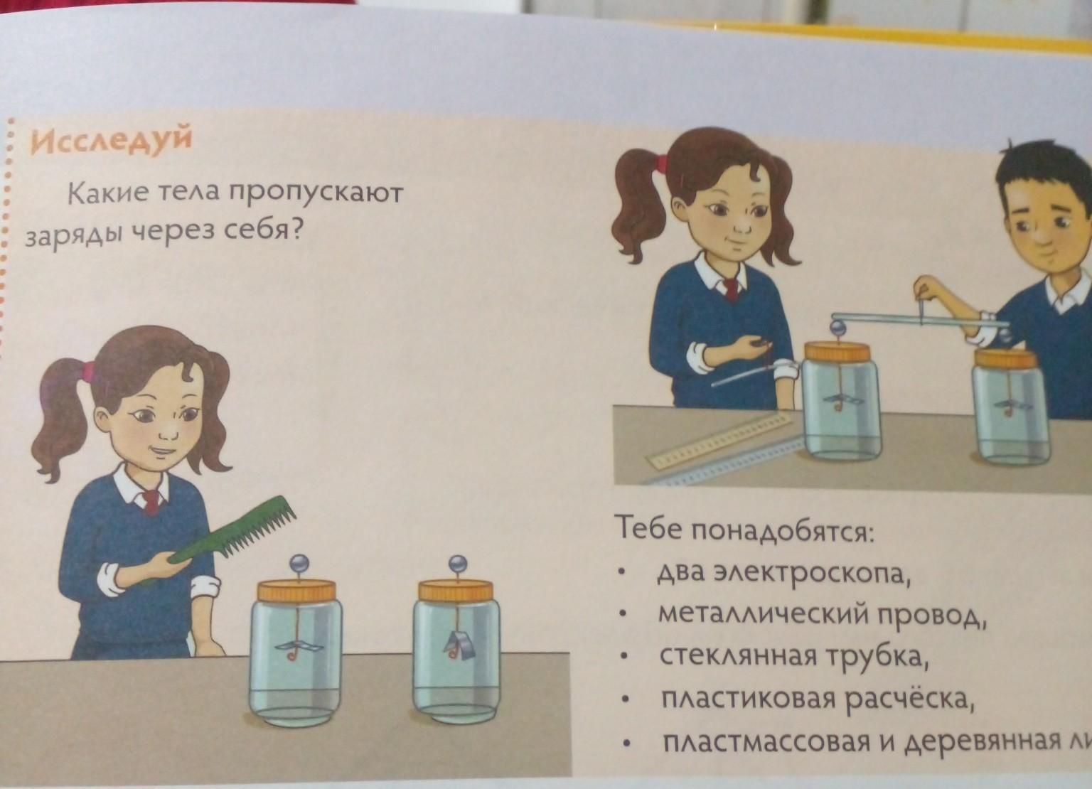 Исследуй Какие тела пропускают заряды через себя? Тебе понадобятся: ● ● ● ● ● два электроскопа, металлический провод, стеклянная трубка, пластиковая расчёска, пластмассовая и деревянная линейки.