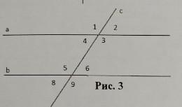 2)На рисунку 3 прямі а та b паралельні, пряма с - січна. кут 9 - 163°, знайдіть кут 1.