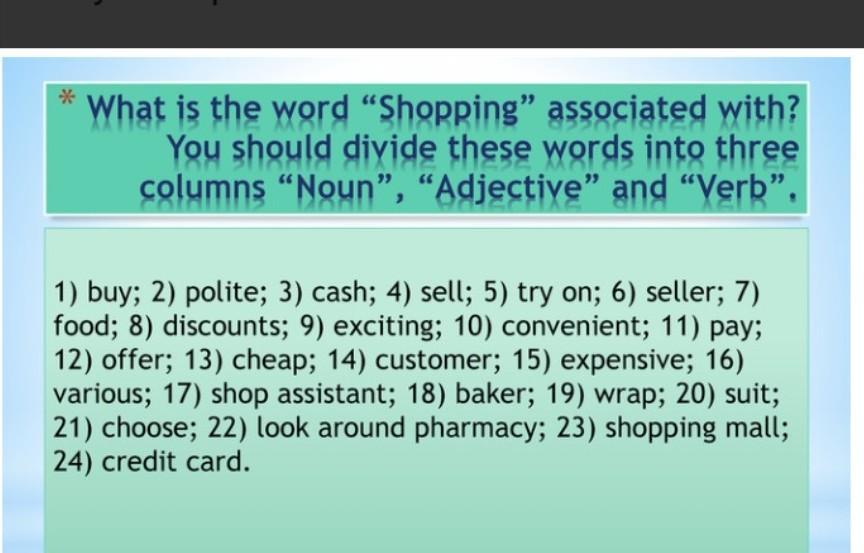 Будь ласка допоможіть мені тут слова треба розподілити на Іменники,Дієслова та Прикметники