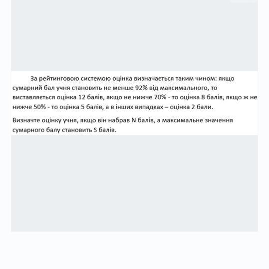Визначте оцінку учня, якщо він набрав и балів, а максимальне значення