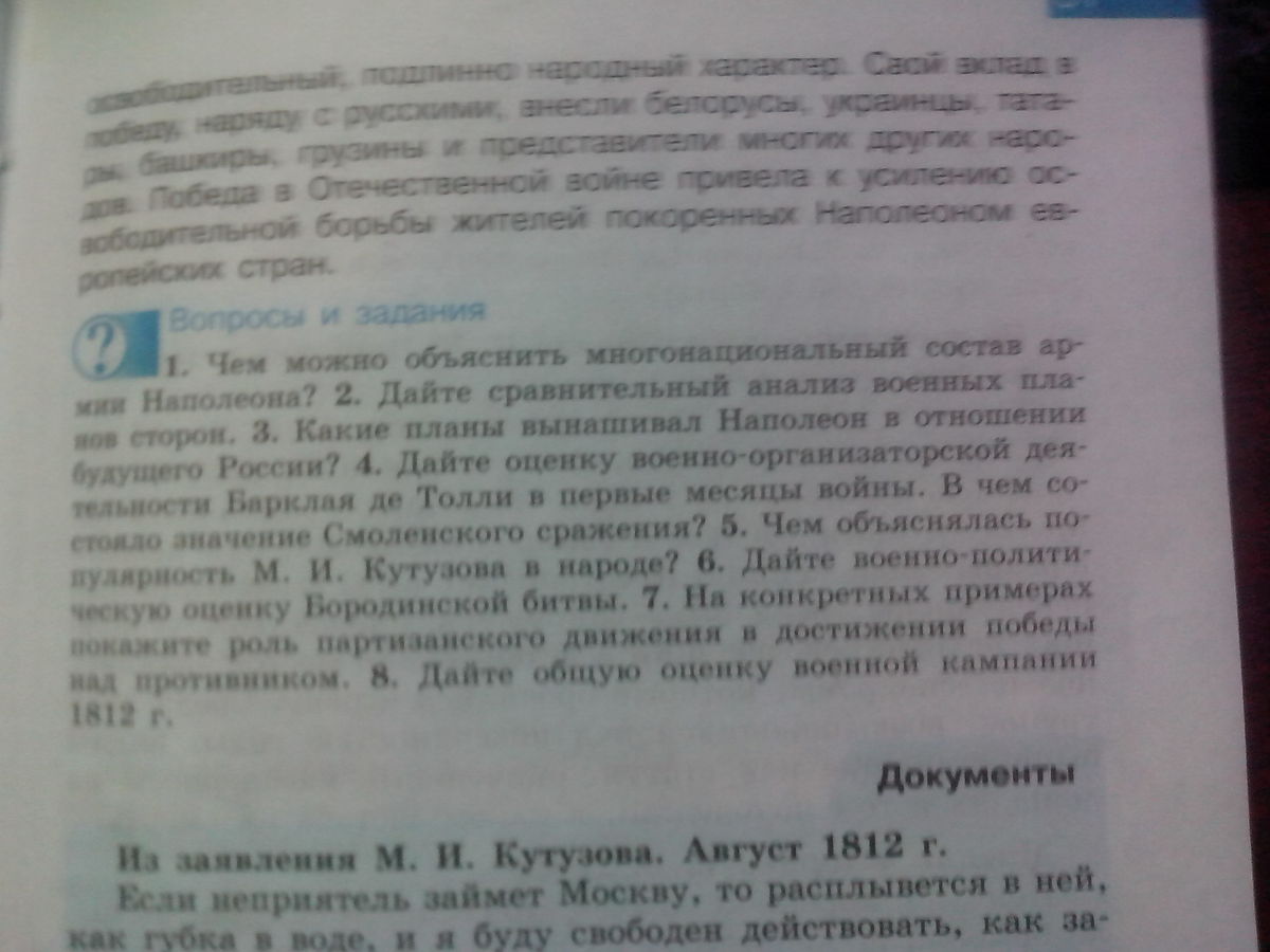 Ответы на вопросы по Истории 8 Класс параграф 4 Отечественная война авторы Данилов и Косулина